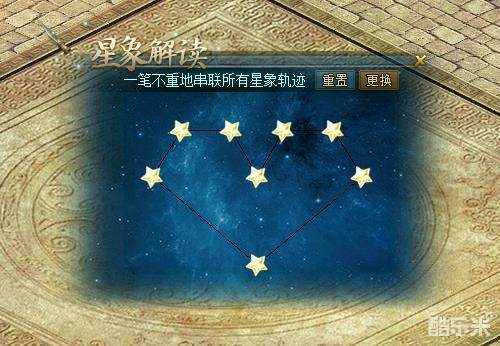 第二个就是星象解读任务。来到中州的“域外天魔”们,不仅隐藏在这个大陆的各个角落,还有一部分选择附身在天墉城居民身上。玩家打开时辰运势就会摇出解读星象任务,解读星象的方式就是,一笔不重地串联所有星象轨迹,完成后就能够获得天魔线索,并前往指定NPC处解救附身的天墉城居民。