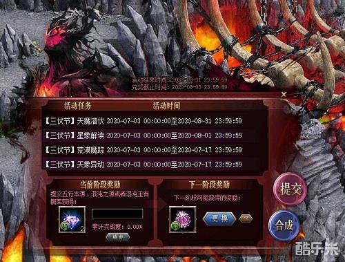 最后一个任务就是荒漠魔踪。同样是在7月3日至7月17日期间,各位道友可以自行前往热砂荒漠,消灭祸乱中州的祖巫奢比尸,并获得一个神秘地图。通过这个地图,玩家可以进入神秘空间“乱魔台”,“乱魔台”内有九个宝箱,其中有四个陷阱宝箱和五个奖励宝箱。玩家打开奖励宝箱可直接获得奖励,若开启陷阱宝箱则会出现奢比尸,玩家需要与其战斗之后才能获得奖励。