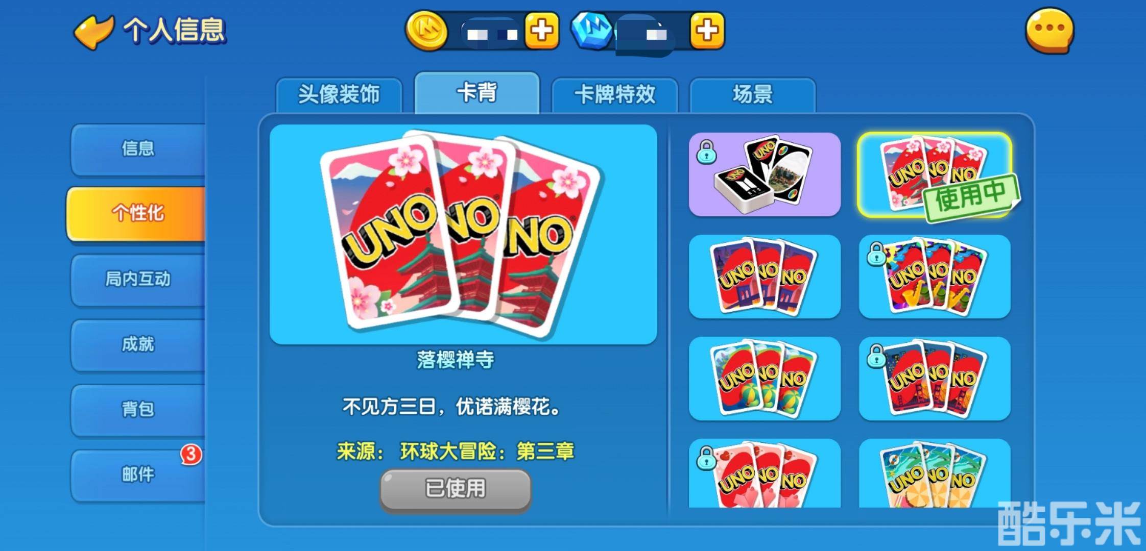 这次日本剧情的卡背也是UNO君最近用的最多的外观之一,浪漫的粉色樱花、精致的和风建筑,还有远处的富士山。这可真是:“不见方三日,优诺满樱花”呀~