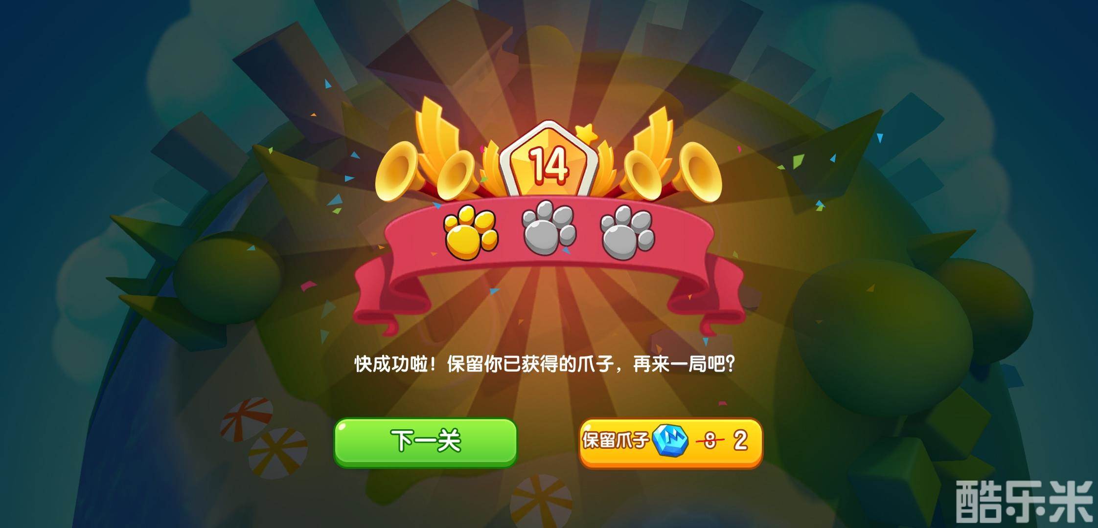 每场对局开始的时候,都会给出三个通关条件,每满足一个条件就获得一个爪印。
