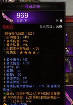 主手和副手的选择,我是爆伤武器和致命武器搭配,致命武器这个最低1000特效其实用处真不大,不过我点化了18次,将就看看吧。