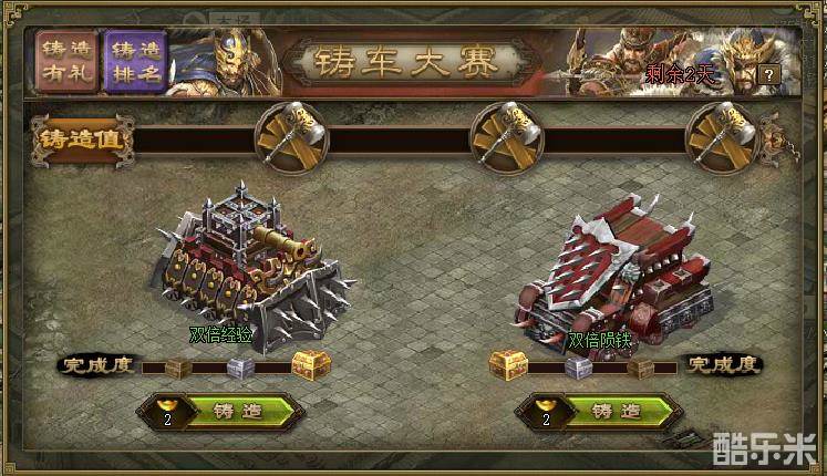 2. 共有烈焰战车和盾甲战车两种战车,每个战车有相应的铸造双倍奖励加成;