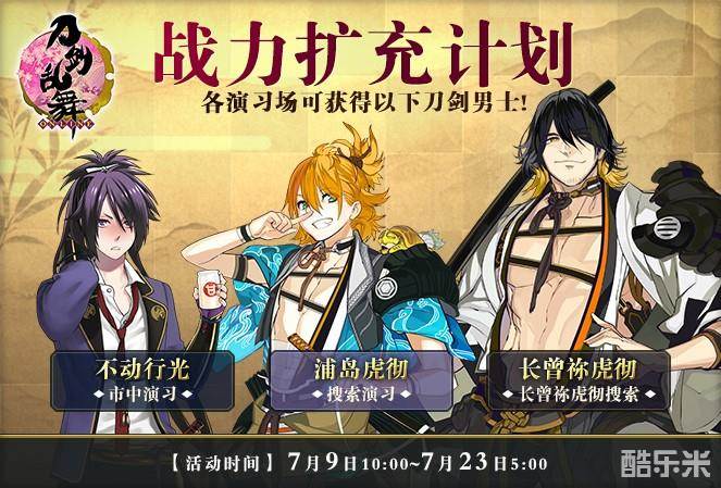 7月9日至7月23日活动期间,审神者可多次出阵活动合战场,每次最终击败合战场首领、通关合战场,即有机会获得稀有刀剑男士。