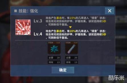 简单直接的伤害增加和爆伤增加,满级应该是25%/30%,数值不高,而且1技能加成稀释,缺材料可以先放一放。