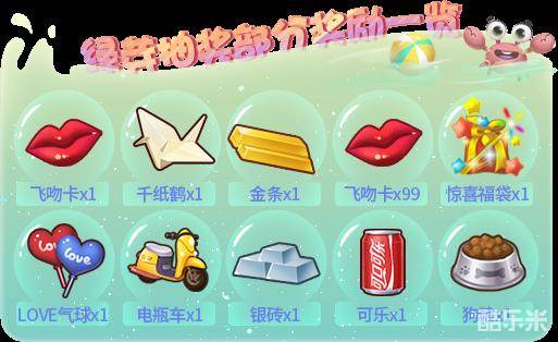 活动期间,每花费10绿芽参与活动抽奖!飞吻卡99、银砖和金条等你赢!