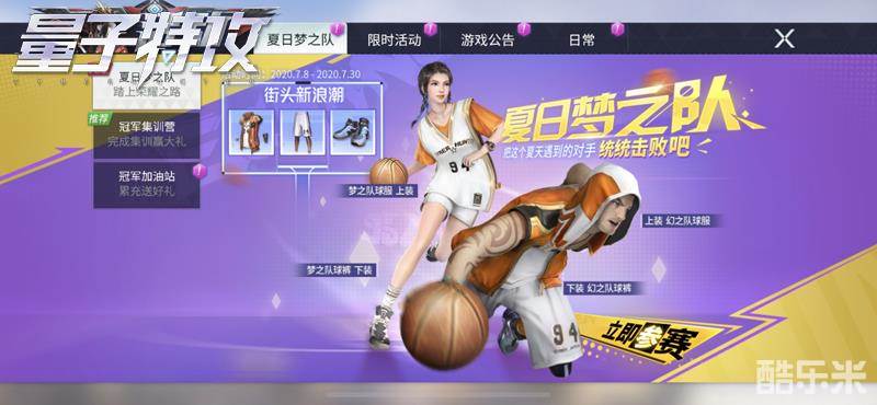 第一人称模式体验更新,漫游者们入场竞技、体验新鲜乐趣之余,也别忘了参与到《量子特攻》精心准备的全新活动“夏日梦之队”里,把全新的篮球队服套装、各类武器外观涂装等奖励全部收入囊中!只要每天登陆游戏、点赞队友、入场竞技等任务,就可以累积集训值、收获“冠军邀请函”,从“街区赛”一路晋级,最终夺得冠军奖杯!收集到的“冠军旗帜”,也能兑换各类外观奖励,让你能妆扮出夏日运动新风尚!