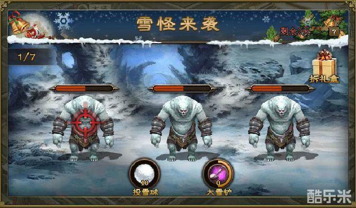 2、使用雪铲攻击全部雪怪,雪铲可通过充值获得,对雪怪王造成多段伤害;