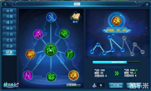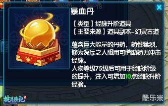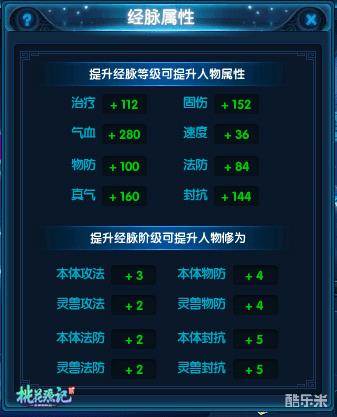 当经脉达到一定等级后,还可以使用暴血丹对经脉进行升阶,暴血丹蕴含巨大的能量,其药性猛烈,修为深厚之人服用可借助药力冲击经脉。成功升阶后,可提升人物本体和灵兽的功法、法防、物防和封抗等8项修为。此外,当经脉升级至一定阶段后,“经外奇穴”也将自动升阶,使修为再次精进。