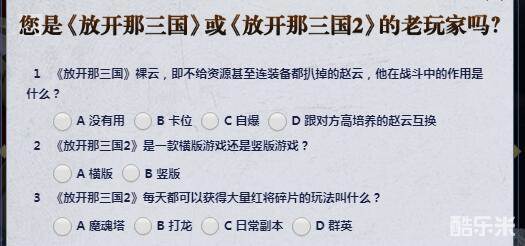 《放开那三国3》调查问卷老玩家问题答案汇总分享