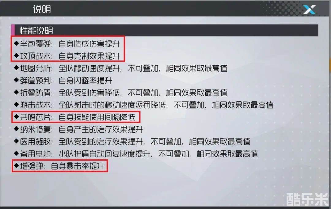 每个配件可带一个,且互不叠加,也没有级数区分,那么一把武器将拥有四条特性。