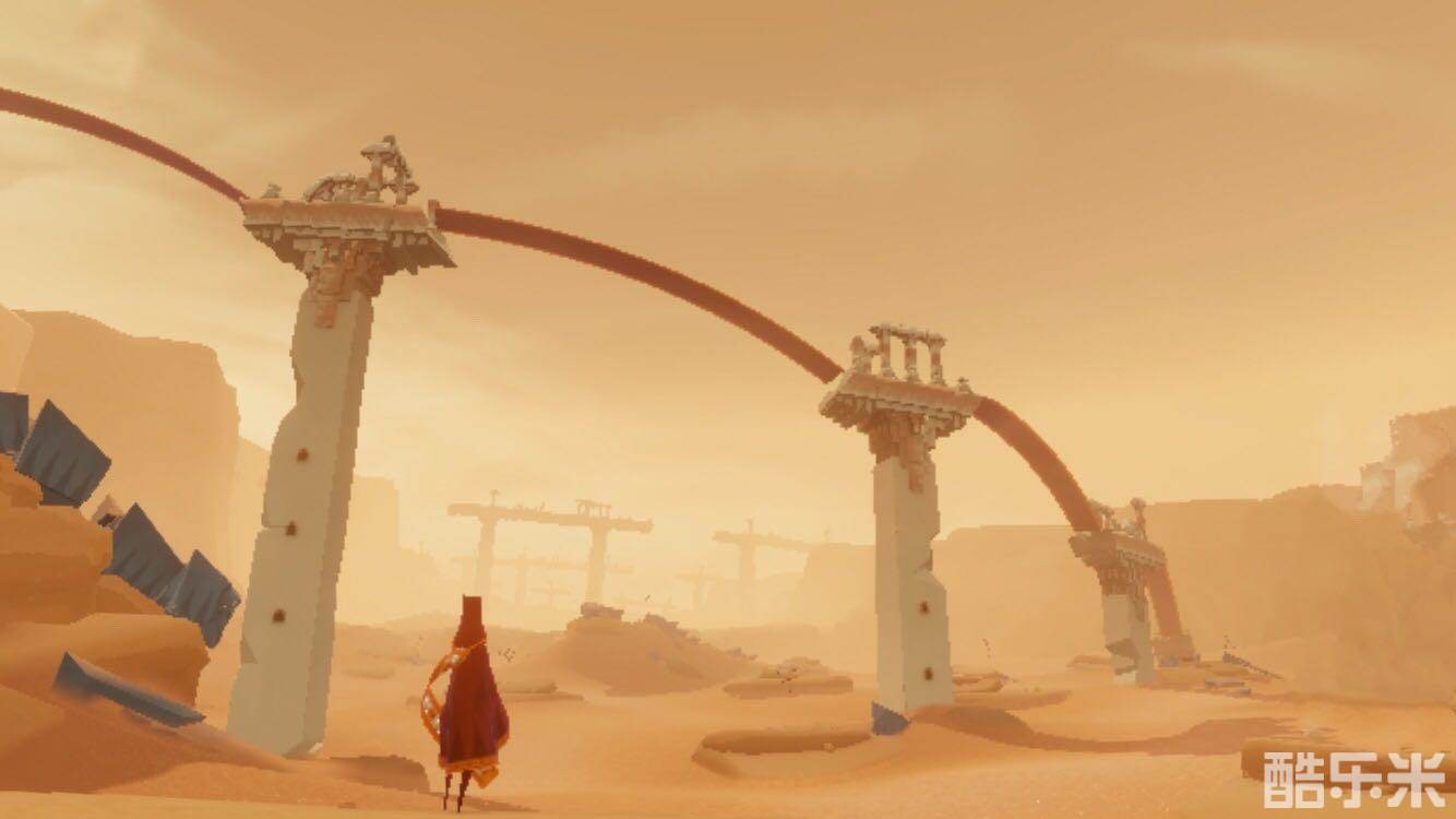 在茫茫的沙漠之中,无名旅者孤独地行走着。突然间,他与另一位旅人相遇了。他们从陌生变得熟悉,互相传递能量,在偌大的世界一同携手前进,直至生命的尽头。没有标签、不再孤独,这是陈星汉通过《风之旅人》想传递给大家的情感。
