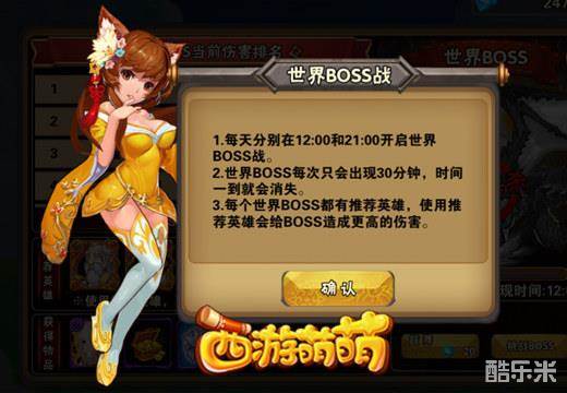 《西游萌萌》中每天有两次世界boss机会,玩家在玩的时候千万不要错过了世界boss。世界boss的奖励是很丰富的,只要玩家参与了就会有奖励,而且这些奖励会随着玩家的伤害排名而不断的增加,有些时候运气好的话还有额外的特殊奖励,世界boss堪称免费的超大礼包。