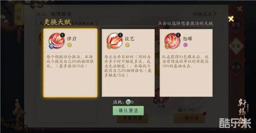沧剑盟:“律刃”可在每个偶数回合激活,本场战斗永久提高自己物理强化;“技艺”则使角色在每次成功击杀目标时,本场战斗永久提高物理强化;“强袭”可使角色在攻击生命高于50%的单位时提高基础物理攻击。