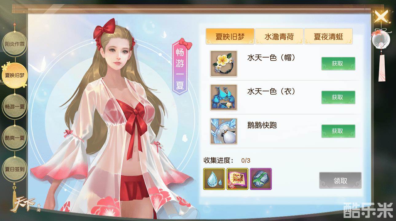 七月盛夏,《天下》手游全新“夏映旧梦”活动缤纷福利为你而来!7月9日至7月22日活动期间,凡是收集到“水天一色”比基尼泳装、“鹅鹅快跑”冰酷杂技珍兽两大外观的玩家,就可免费领取苍穹之淬、四象石、酷爽一夏礼包3折券等精美奖励;成功集满全新酒红JK泳装“畅游一夏”、锦鲤戏水珍兽“水澹青荷”、mini章鱼“粉色石居”等三款外观,还可免费领取雷音溟钻、盛夏礼券等超值道具。持有盛夏礼券的少侠可前往缤纷夏日声望商城兑换“灵魄·剑圣”等各种奖励!