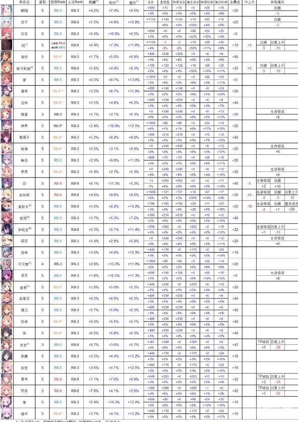 (1) R9-5对角色防御面提升较大,所以除了黑骑外的T都可以提升到R9-5,即使部分角色会有回复上升减少的问题,但总体硬度上升了。