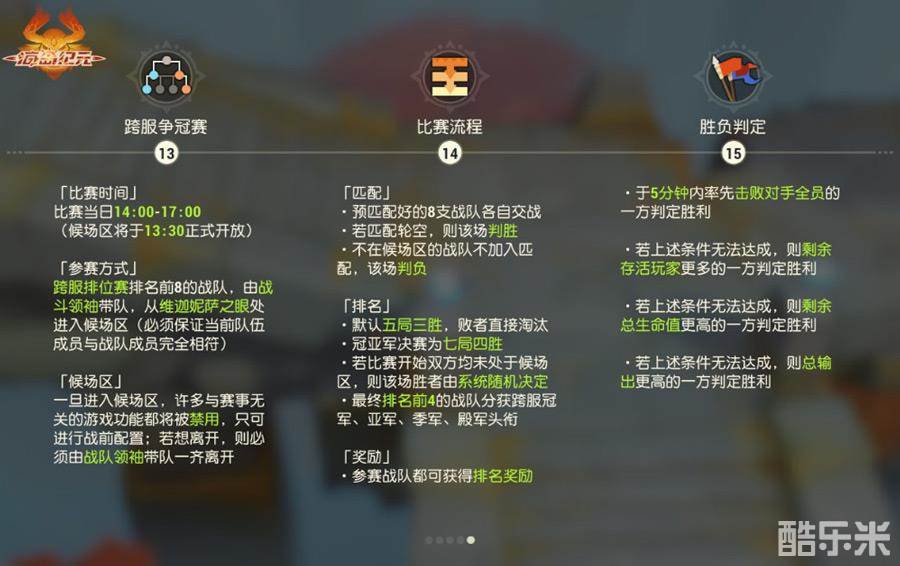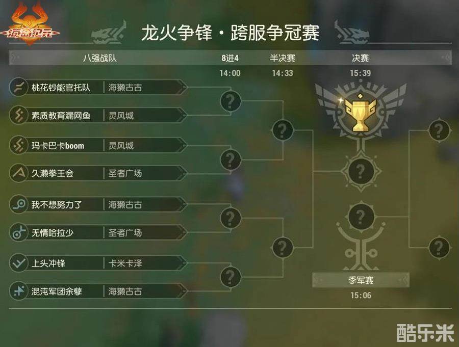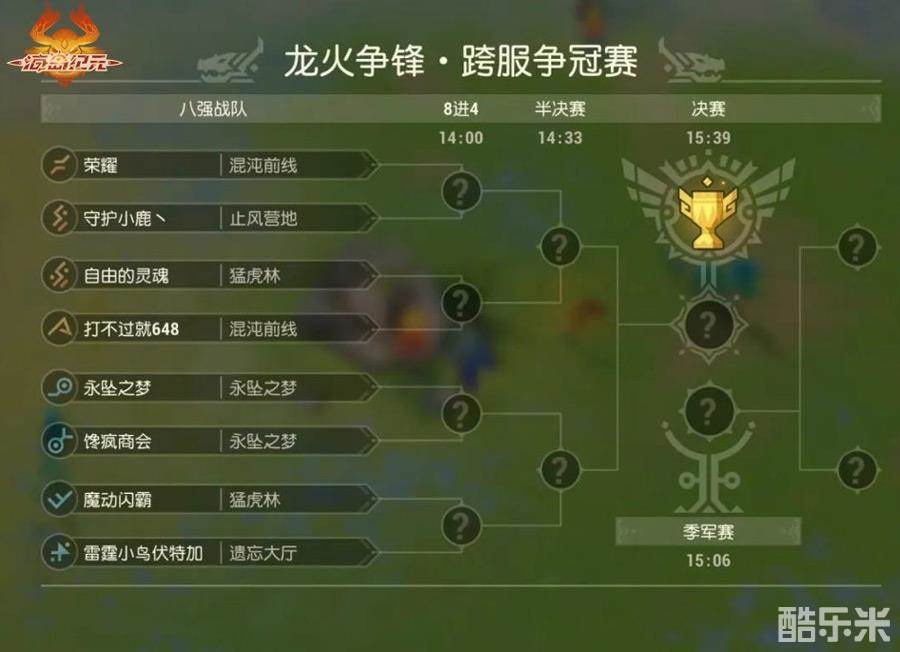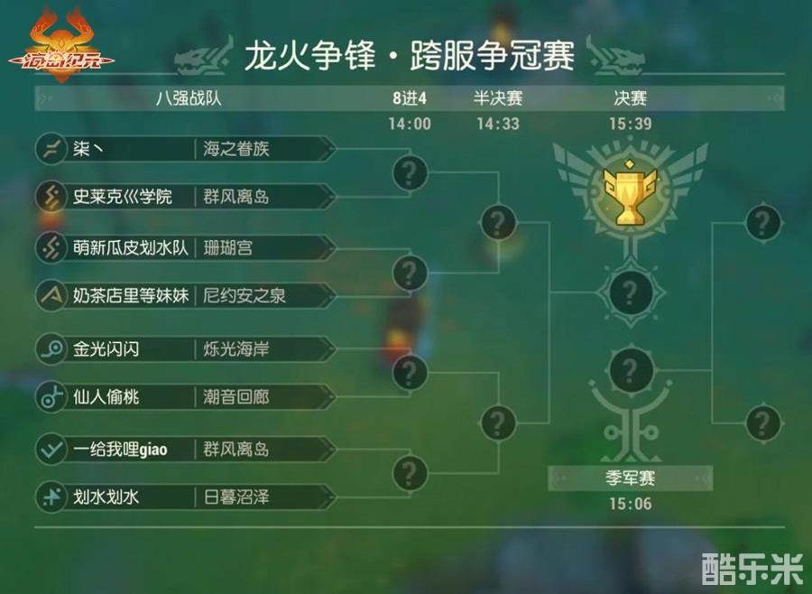 跨服决赛,周日开战!经过了多轮激烈对抗,龙火争锋跨服PVP精英赛将于本周日14:00-17:00(2020年7月19日)迎来跨服决赛,把本次赛事推向最高潮!在最终的「跨服争冠赛」中,上面公布的每个赛区8支最强的战队将各自交战,以五局三胜制来决出胜负,败者直接淘汰,留到最后的两支队伍以七局四胜制决定冠、亚军归属。龙火争锋跨服PVP精英赛最终排名前4的战队,将分别获得跨服冠军、亚军、季军、殿军头衔。