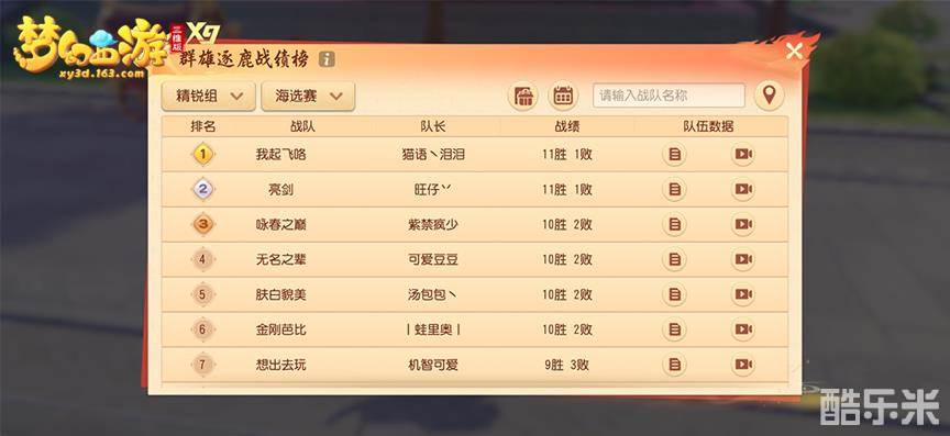 《梦幻西游三维版》第二届群雄逐鹿跨服精英赛海选赛中,老牌强队的发挥依然强势,如上届赛事“咏春之巅”(10胜2败)、“兄弟联盟”(11胜2败)战队位居榜单前列。