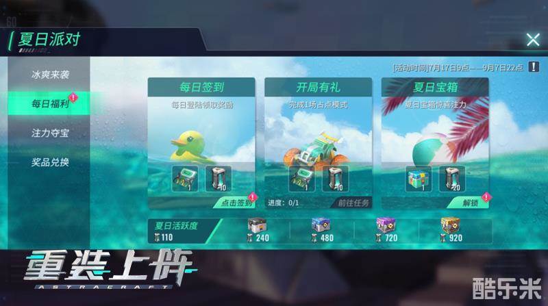《重装上阵》冰爽派对里,工程师们每天都能通过“每日签到”与“开局有礼”,领取用于注力夺宝的虚拟芯片、累积“夏日活跃度”。有了“夏日活跃度”,工程师们就能解锁全新的头像、头像框、光印以及海量源石等丰厚奖励!此外,工程师们每天还可购入1个“夏日宝箱”,收获更多的虚拟芯片、源石、星币、额外的“夏日活跃度”等多种好礼,让你尽情参与冰爽派对,开开心心过暑期!
