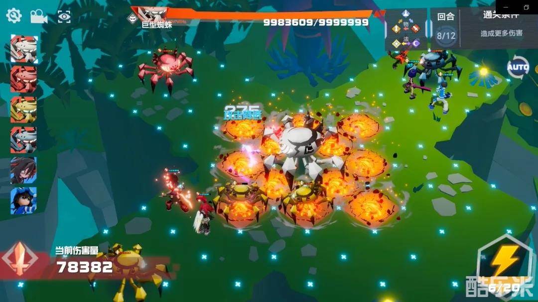 周围的蜘蛛boss如果召唤了小怪,就优先攻击小怪,之后再打boss本体,否则就会造成小怪走出攻击范围,伤害下滑。参赛者的技能使用主要遵循上文所述,放技能的频率根据元力值节奏走。