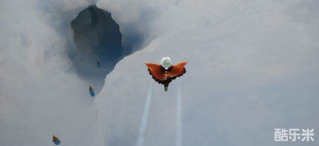 1、飞行赛道两边你可以看到两个蓝色的点,我们一直跟着就可以找到了云端的神庙;