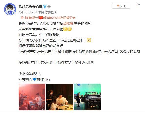 7月18日,有网友在微博爆出了几张陈赫在现场的花絮图,图中可以大概看到,陈赫在拍摄现场正与工作人员沟通,并且爆出的不止一个场景,图里出现的车,和吃鸡中的吉普车非常相似。