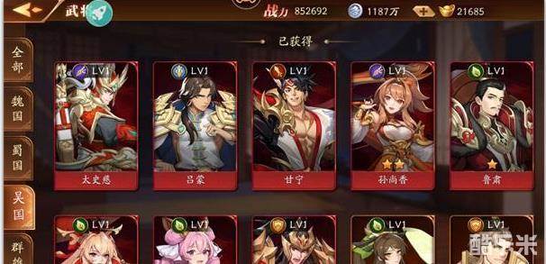 2、一般开局:陆逊、大乔或鲁肃;其他15资质武将。