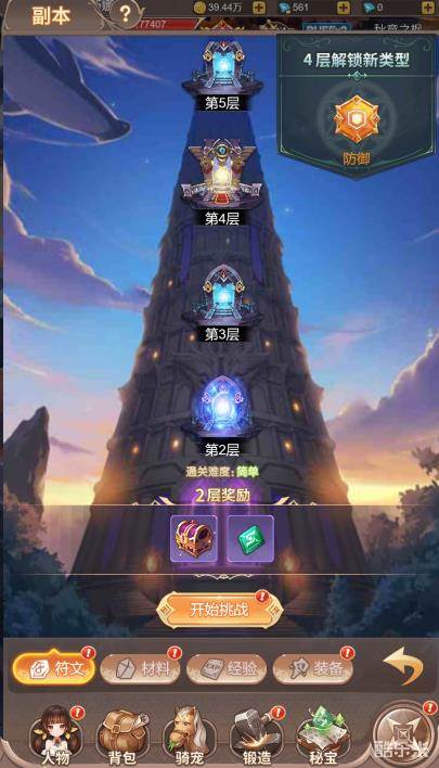 2.45级左右会开放符文塔,符文塔的层数越高,开启的符文槽和符文类型就越多,能装备更加强,更加多的高级符文。