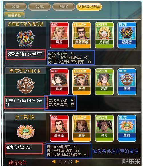 强力灌篮(不需要):出字,增加灌篮进球率,因对抗命中降低时易出