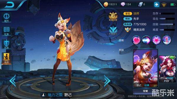 妲己是一个操作简单且爆发力极强的英雄,非常推荐刚接触这款游戏的玩家使用。玩好妲己更多的是考验自己的意识和走位,什么时候该游走,什么时候该后撤,如何配合队友进行控制和击杀,都是妲己的必修课程。掌握了这些之后,妲己也会是一个能够carry全场的英雄!