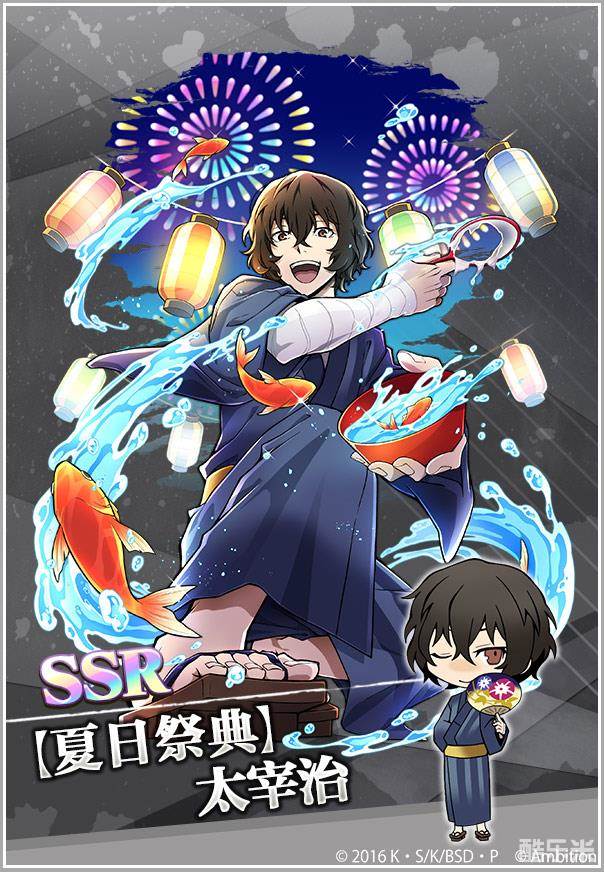 整体来说,这张【夏日祭典】太宰治的定位并不是十分突出,在很多位置都有发挥的潜力。无论是作为常规队伍的队长、翠属性队伍的输出位置还是一个兼职的回复卡牌,你都可以随心使用。如果心动的话,不妨来抽取这张卡试一下吧!