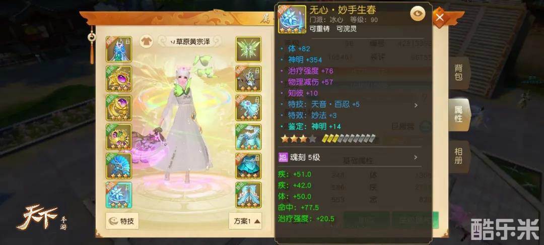 冰心大佬“丷草原黄宗泽”则微微一笑,把她的“无心”副手放在众人面前。除了354点神明、76点治疗强度、57点物理减伤,以及10点知彼等高额属性令人眼馋外,大佬居然还洗出了百忍特技和妙法特效。这一口妙手奶下去,倒欠几管血可是真的!