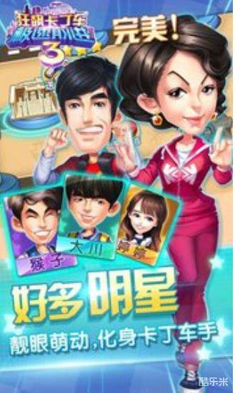 清新、Q版画风结合节目特色和明星,刘翔、郭晶晶、金星等16位明星搭档,在游戏中与你一起竞速狂飙,争夺冠军,尽情享受“速度与激情”;
