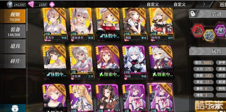 还有装备,炮队和驱逐队都有开局送的红装可以过渡用,航母的话就是要建造和搞升星材料,起来的要晚。