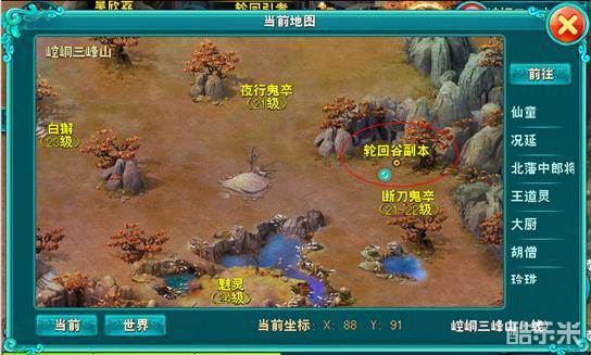 进入地点:崆峒三峰山(87,94)轮回谷副本入口NPC轮回引者;