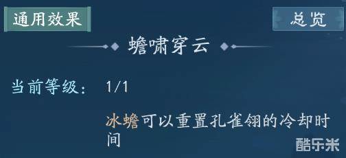 冰蟾就是1号技能触发的蛊技能,这个可以刷新2号技能孔雀翎的冷却时间,这个大大提升了1号位技能的重要性,并且大大增加了2号位技能的输出量,也对总体的技能循环产生很大的影响。