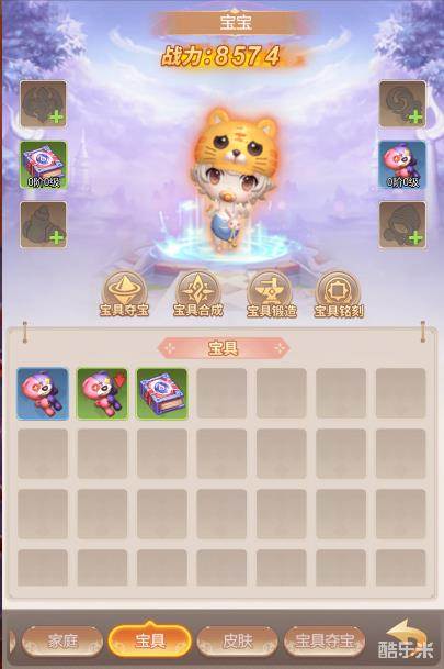 3,宝具:可以给宝宝穿戴宝具提高宝宝属性和战力。