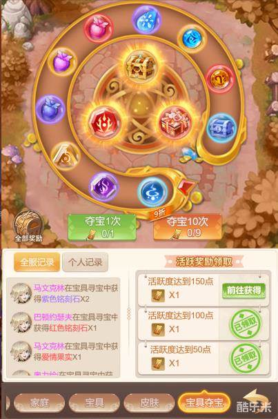 5,夺宝:活跃度到达一定值之后,可以领取夺宝券,用来夺宝,运气好的话可以获得很好的宝具。