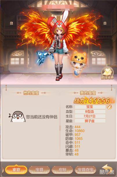 4,皮肤:给宝宝穿上漂亮的衣服,可以增加宝宝属性和战力,不同的皮肤假的属性不同。