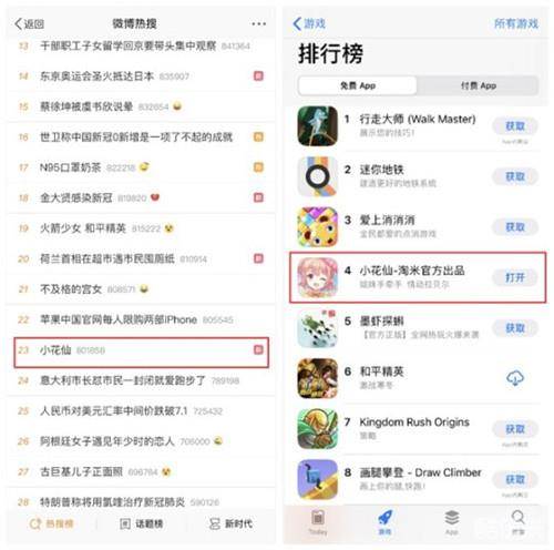 在2020年3月,这款运营了十年的网页游戏正式推出其官方首款同名手游《小花仙》,一举冲上微博热搜,并成功拿下App Store免费榜第四位,吸引更多泛用户关注和热议,手游超预期的热度迅速让小花仙从饭圈出圈,掀起一波女性向游戏的新浪潮。