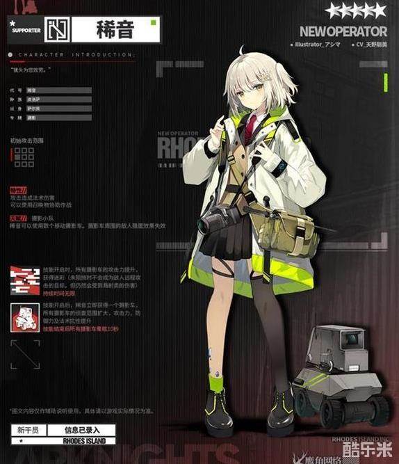 总的来说稀音是很独特的,具体要看玩家自己的使用感受。稀音的天赋是,可以使用多个摄影车协助作战,并且摄影车可以使敌人失去隐匿效果。这就是真正的高台反隐了,而且反隐效果一直存在,比月禾的反隐能力更加直接,更加持久。