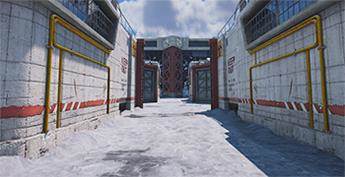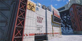 如场景截图所示,冰雪堡垒是一处封闭式堡垒,堡垒内几座生物实验室令该地图显得格外神秘。但别被平静的天空所迷惑,地图中随处可见的神秘代码、生化标识、紧闭的安全大门…都暗示着即将到来的冲突与危机。