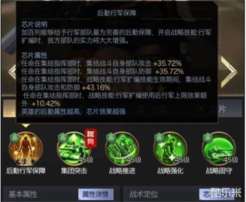 英雄最基础的攻略就是芯片搭配啦,相信在加百列之前,各位指挥官用其他后勤英雄任命在集结指挥部时,也已经用到了很多委任芯片,战略推进、战略强化、战略固守,分别为集结战斗的攻击、生命、防御提供加成,而稀有的“集团突击”更是可以同时提高三围属性。