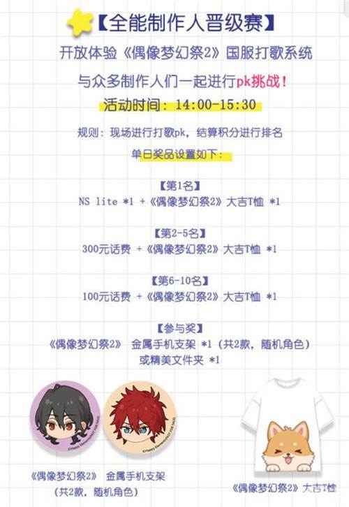 此外,在体验打歌系统的同时,你可以与众多制作人们一起进行pk挑战!NS lite、大吉T恤、话费奖励、精美金属手机支架等你带走。