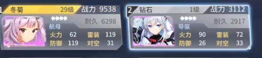 阵容带5个高速驱逐和1个航母,这边尽量选择高速的舰姬,航速一般都可以达到95,99左右,航母的输出越高越好。