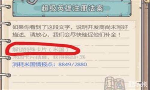 特殊卡片:将【超级英雄注册法案】升到1级,即可解锁特殊卡片,【超级英雄注册法案】可以使玩家获得米国卡片奖励增加3%,但是会消耗情报点。