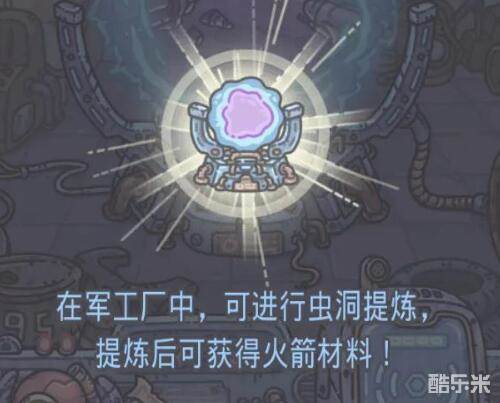接着我们打败苦工之后就可以进行虫洞核心的事件了,拿走虫洞核心之后我们就能获得虫洞提炼装置,虫洞提炼装置可以在军工厂中进行虫洞的提炼,来获得火箭材料。