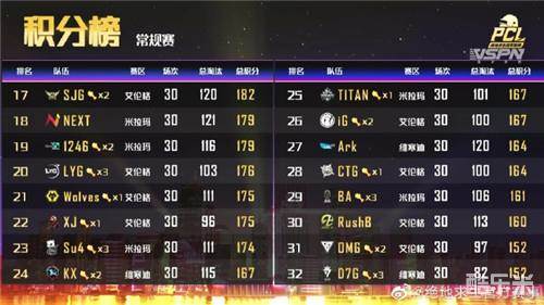 经过15天的高强度对战,常规赛已落下帷幕,24支领先队伍进入下半赛程。秋季赛赛制升级,参赛名额精简,升降级制度也有所调整,这让本次2020PCL夏季赛结果变得尤为重要。其中,常规赛表现最为亮眼的莫过于TSG战队了,他们在常规赛上拿到四场比赛的胜利,以总分262的分数高居第一位。排在第二位的则是老牌俱乐部AG战队,队员在经历长时间的磨合后状态火热,成为常规赛上吃到最多鸡的队伍之一。夺冠大热门iFTY战队则以最高淘汰数166个总分245分位列第三位,正朝着顶峰稳步迈进。