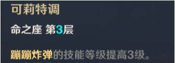 提升元素战技的技能等级,蹦蹦炸弹的爆炸伤害并不低,点亮命之座3层时等于提高了小可莉的输出。