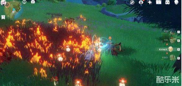 依然是连续小抛物线式的攻击,战斗中蹦蹦炸弹每次弹跳可攻击到的范围不小,在对付群聚敌人时还是比较舒服的,在这里就有几种专门针对蹦蹦炸弹的实际应用,比如温迪的大招配合可莉的蹦蹦炸弹,吸附敌人的同时也吸附诡雷,再切换雷元素角色可进行多次的超载输出,又或者施放蹦蹦炸弹后,由风女主元素战技吸引周围敌人和所有诡雷进行扩散输出,这样不仅能最大化利用元素战技,而且输出量也是十分可观的,如下图。
