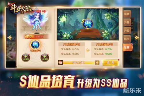 S仙品培育所消耗的是新材料天地精华,而培育获得的属性都是全队属性,同时当培育达到+5时仙品就会升阶为SS仙品。